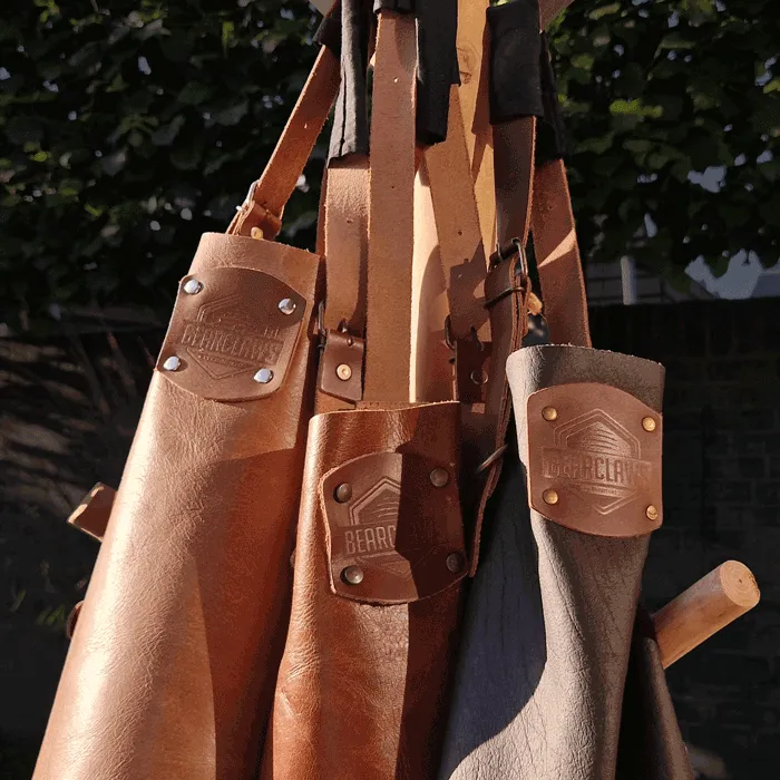 Creëer een combinatie van comfort en efficiëntie het BearClaws cognac BBQ Schort helpt je om productief te blijven terwijl je er goed uitziet. Elk schort dat we verkopen, is gemaakt met een liefde voor vakmanschap, wat zorgt voor een uniek, onderscheidend stuk om uw artistieke passies te verbeteren.
