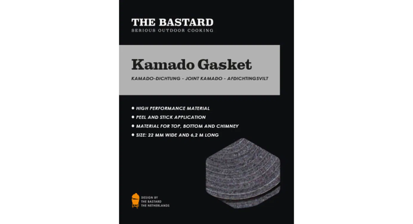 High performance zelfklevend, Nomex/Kevlar vervangingsvilt voor The Bastard. Eenvoudig zelf te vervangen wanneer het vilt van jouw kamado versleten is. De lengte is voldoende voor onderkant, bovenkant Kamado en schoorsteen te vernieuwen.